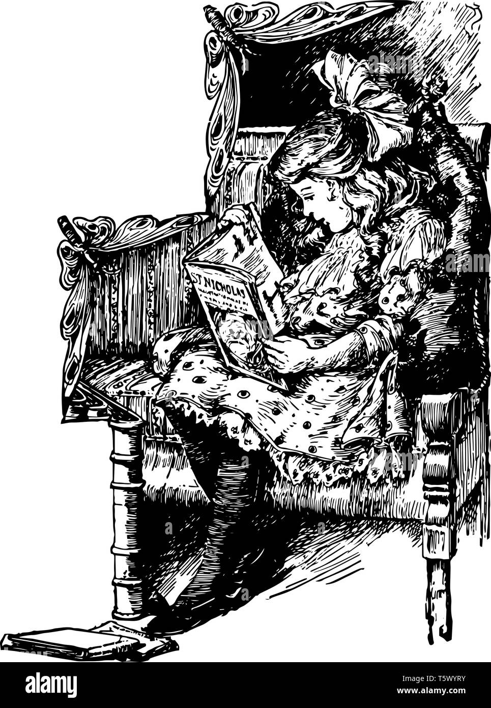 Girl Sitting On Bench Reading A Book Child Female Kid Leisure