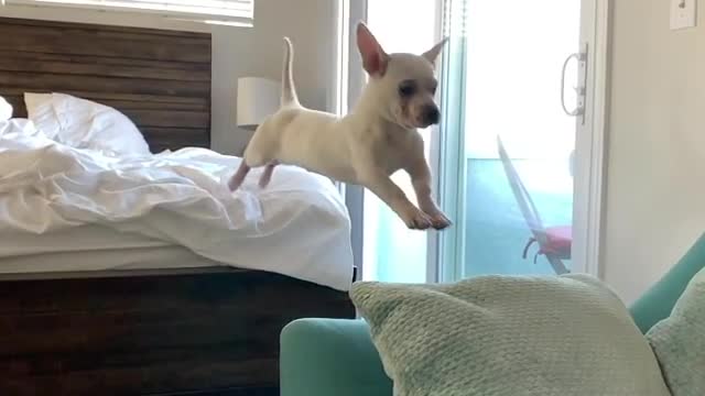 Fearless Little Puppy Makes A Big Jump In Epic Slow Motion