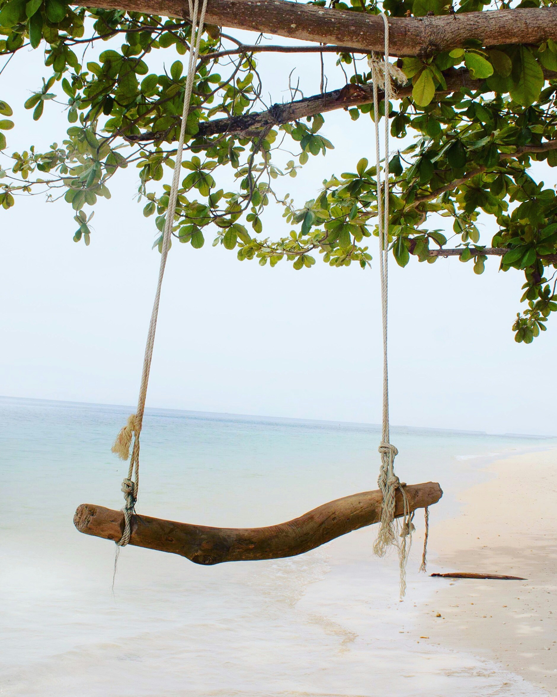 Brown Swing Bench Made Out Of Tree Trunk Near The Seashore Photo