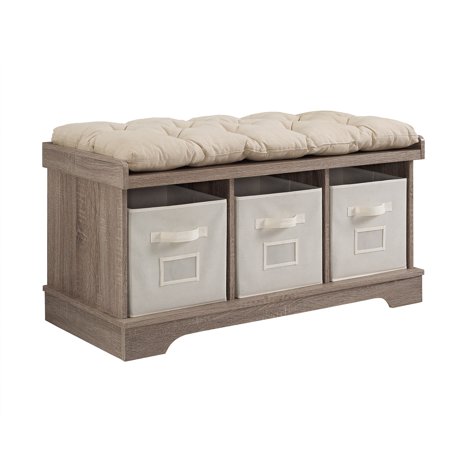 We Furniture 42 Wood Storage Bench With Totes And Cushion