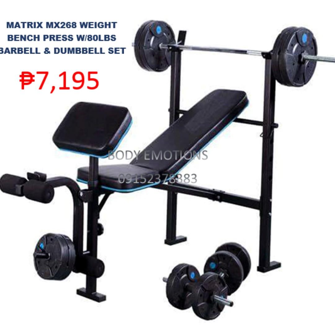 Matrix Mx268 Weight Bench Press With Barbell And Dumbbell On Carousell