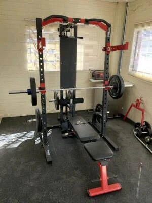 Gym Master Heavy Duty Half Power Cage Squat Rack Bench Press Pull