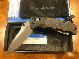 The five specific ones are the 940 1 940 1501 484 regular 484 1 and the 484 1601. Benchmades axis lock is exceptionally strong and fully ambidextrous. The nakamura 484 1 features carbon fiber scales a blue anodized pivot bushing and barrel spacers and a premium cpm s90v steel blade.