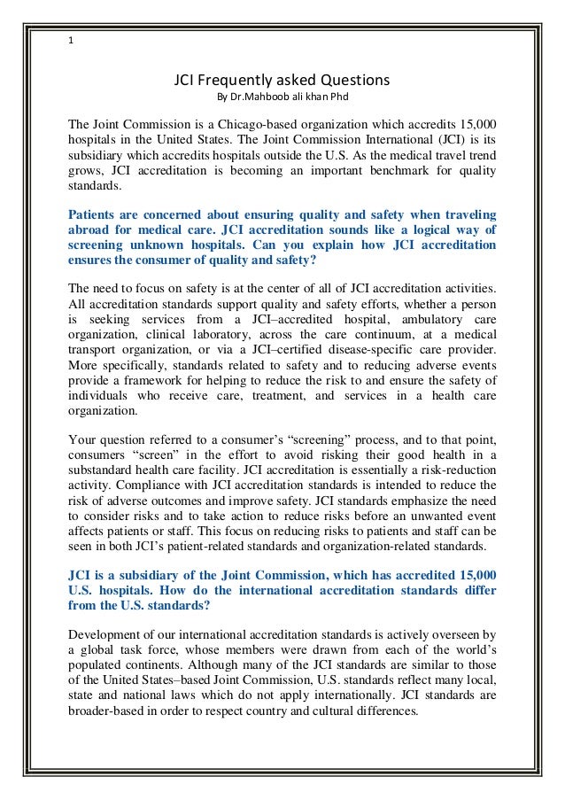 Jci Frequently Asked Questions By Dr Mahboob Ali Khan Phd