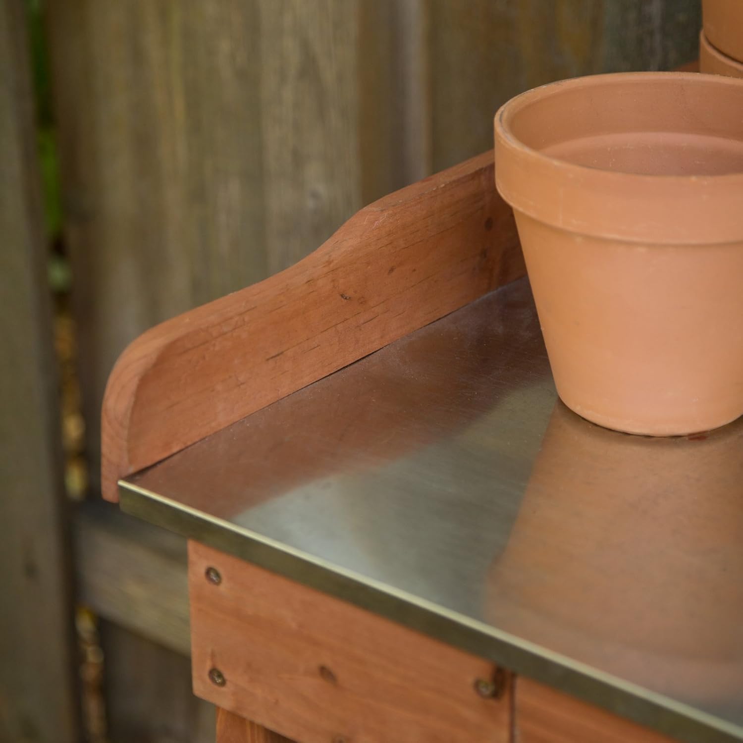 Outdoor Wood Potting Bench Garden Table Metal Top Durable Weather