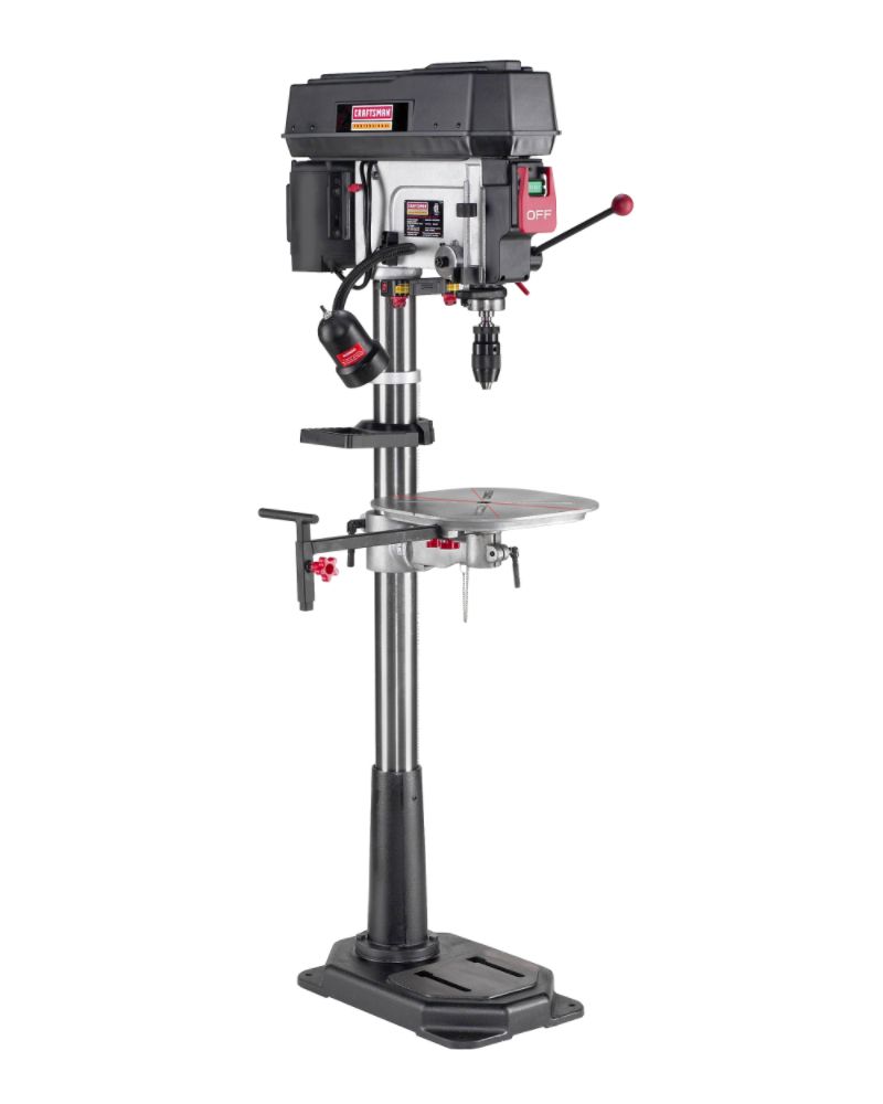 Find quality drill presses online or in store. 10 in drilling capacity 5 in throat size will drill to the center of a 10 in work piece. Floor standing drill press with worklight laser and 16 speeds model 18 900l 1499 00 1499 00.