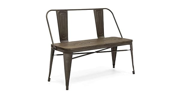 Amazon Com Industrial Metal Dining Bench With Wooden Seat Floor