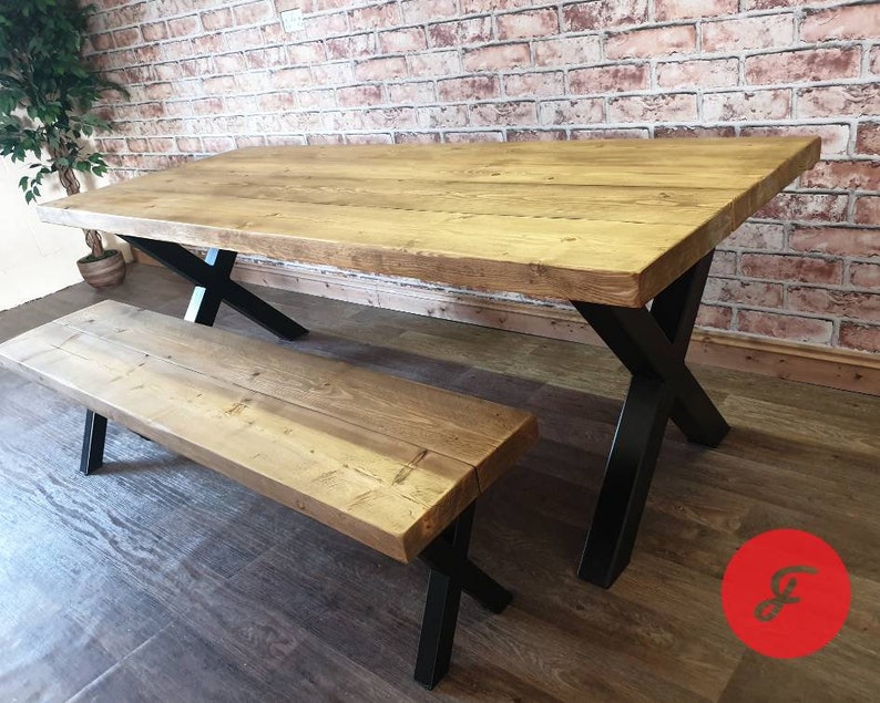 Rustic Style Dining Table Matching Bench Chunky Reclaimed Etsy