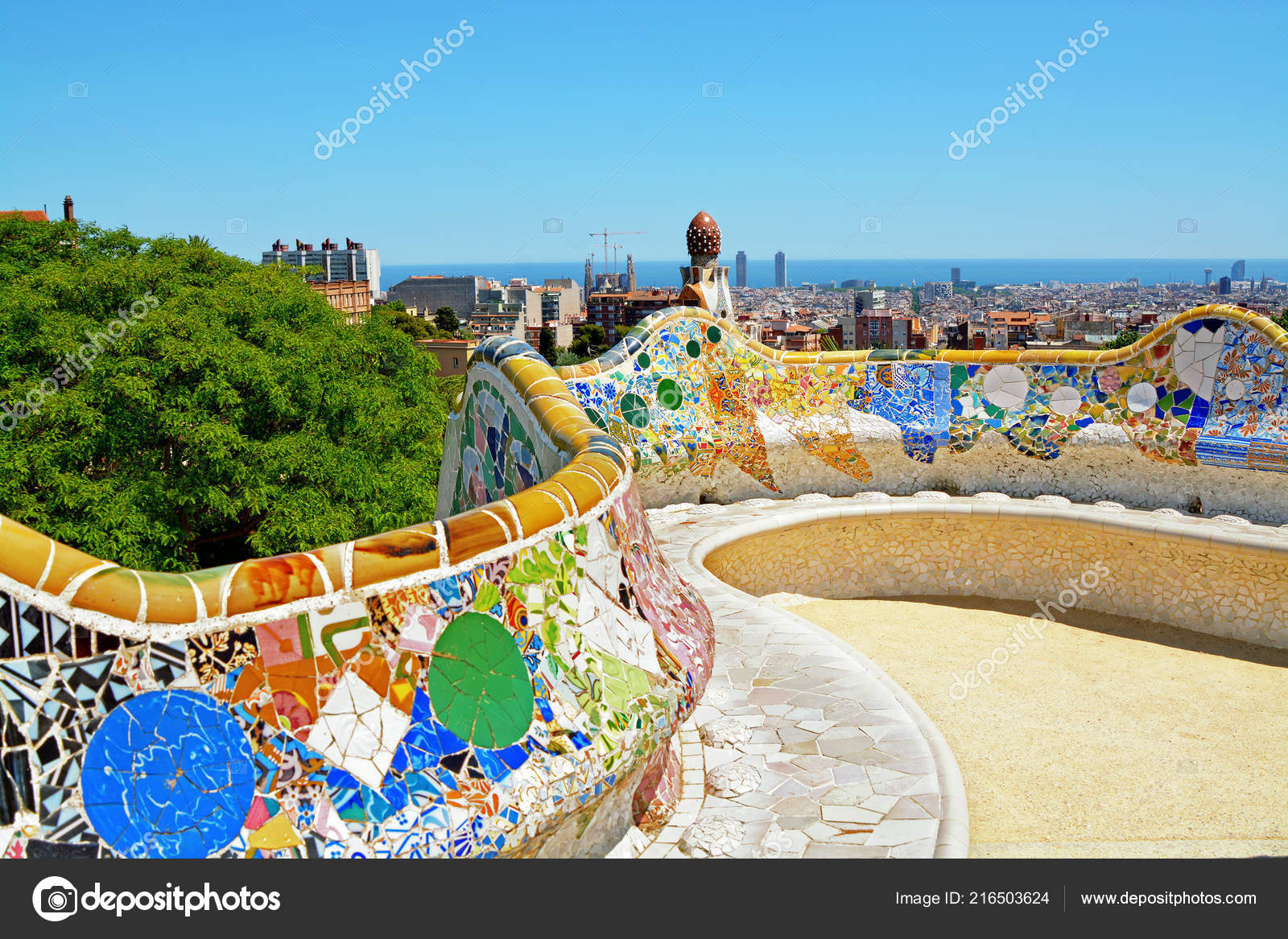 Colorful Ceramic Bench Famous Park Guell Designed Antoni Gaudi