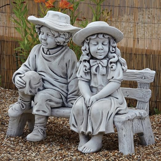 Large Garden Statues Boy Girl On Bench Stone Sculpture Amazon
