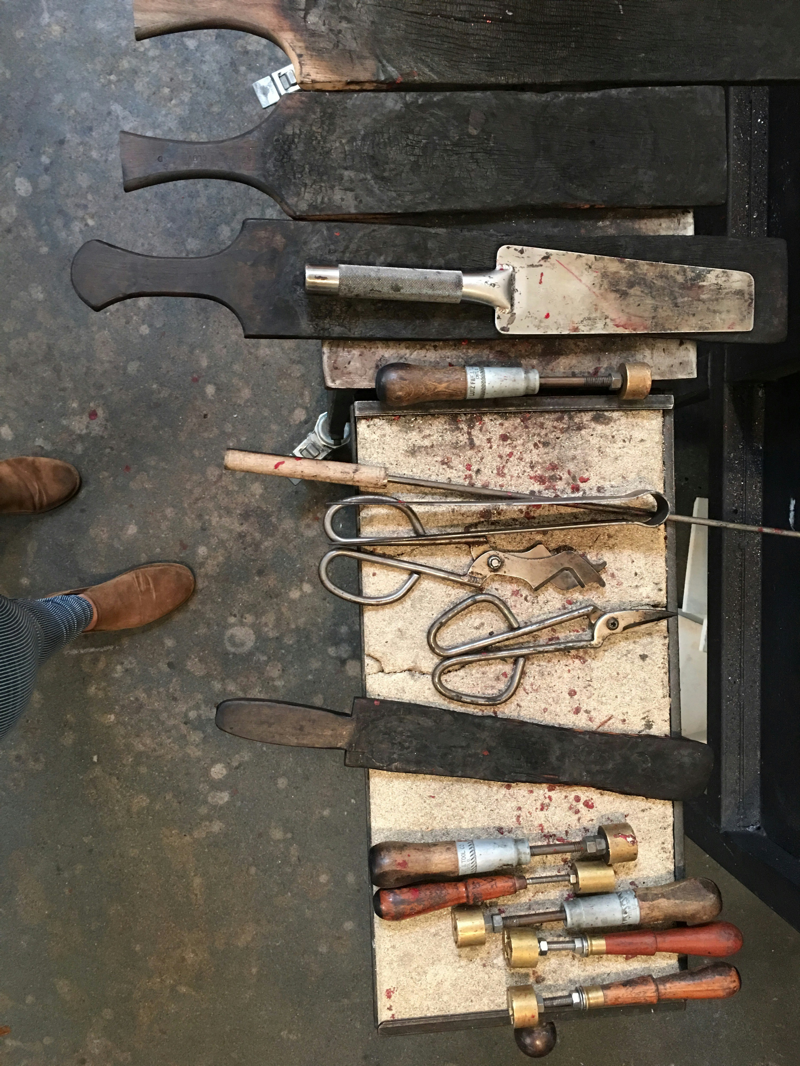 Various Glass Blowing Tools Lay On A Work Bench At The Vitreluxe
