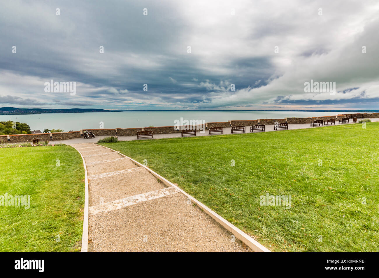 Lakeside Bench At October Indian Summer Overcast Sky Tranquil