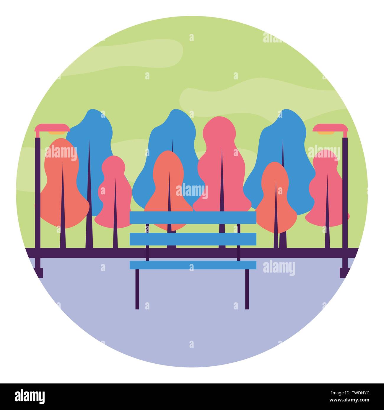 Landscape Bench Lamps Trees Park Vector Illustration Stock Vector