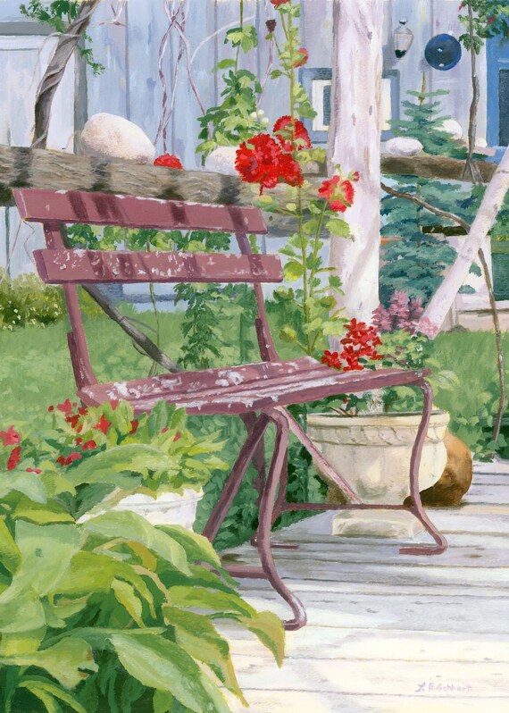 5 X 7 Summer Landscape Bench Flowers Giclee Reproduction Etsy