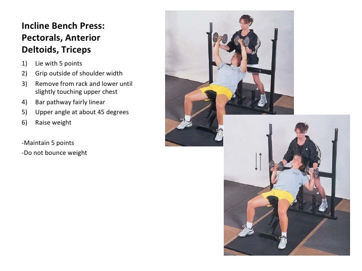 Lie back on an incline bench. The barbell bench press is one of three lifts in.