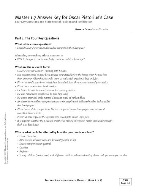 Master 1 7 Answer Key For Oscar Pistorius S Case Nih Office Of