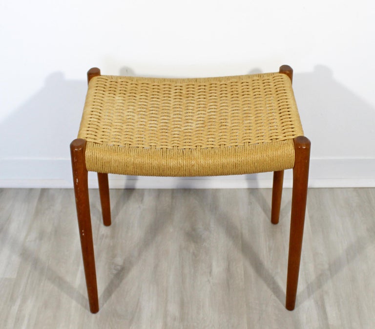 Mid Century Modern Teak And Rattan Cord Stool Bench Seat Niels