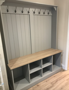 Hand Crafted Boot Room Bench 5ft Wide With Coat Hooks And Oak Seat