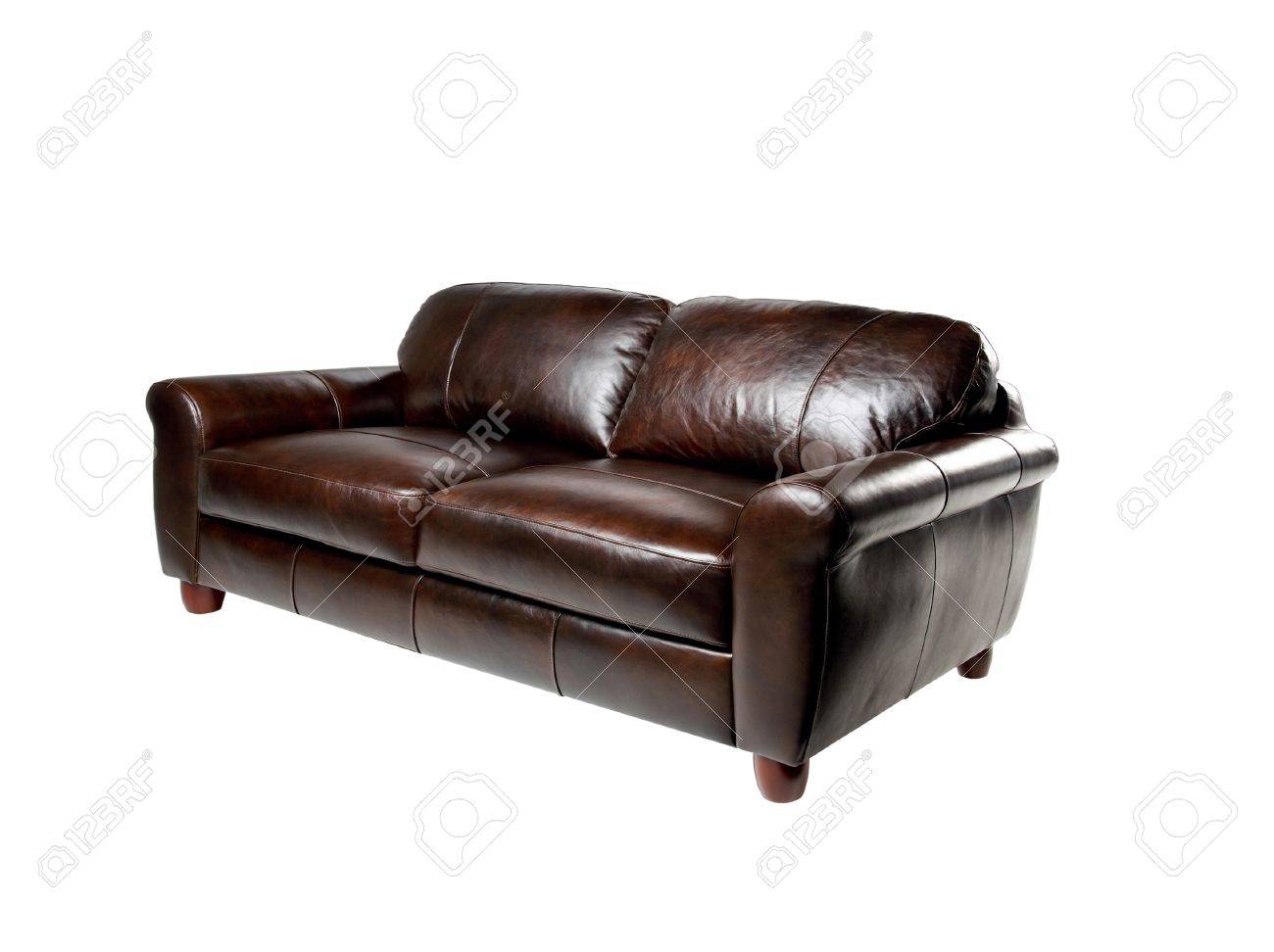 Brown Genuine Leather Sofa Bench Isolated On White Background