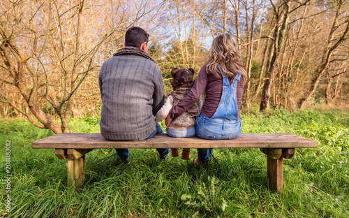 Back View Of Man And Woman Hugging To A Little Girl Sitting On The