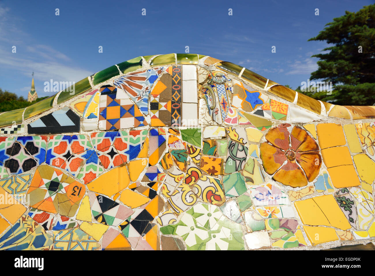 Trencadis Mosaic At Gaudi Park Guell In Barcelona Stock Photo
